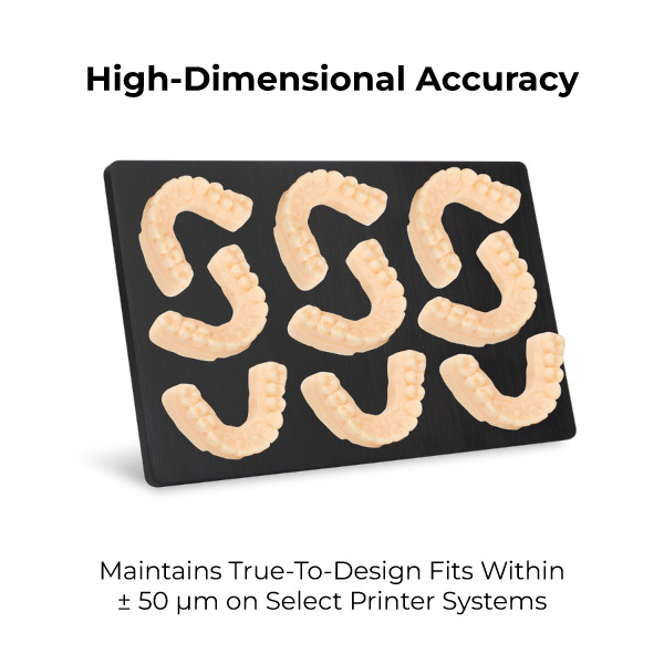 • Orthodontic Support: Suited for aligner production and inspection with its stable, scanner-ready surface.